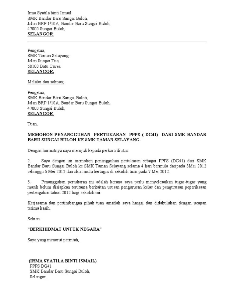 Contoh surat tangguh lapor diri pertukaran. 7/18/2019 contoh surat penangguhan lapor diri 1/3contoh surat penangguhan lapor diri(kepadaketua jabatan yang baharu)tuan,pemberitahu pertukaran (nama .